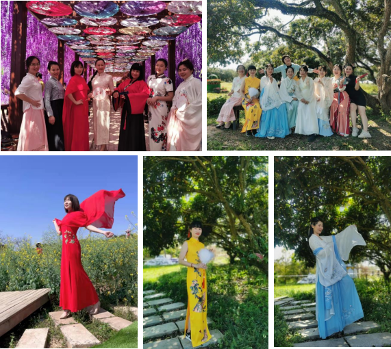 素質(zhì)拓展過(guò)后,婦委會(huì)開(kāi)展了濱海巾幗別樣“美” 的游園展風(fēng)采活動(dòng)。女職工紛紛換上古色古香的漢服、旗袍,前往花的海洋感受春的氣息,進(jìn)行賞花、合影,將煩惱與壓力釋放在花香鳥(niǎo)語(yǔ)中。