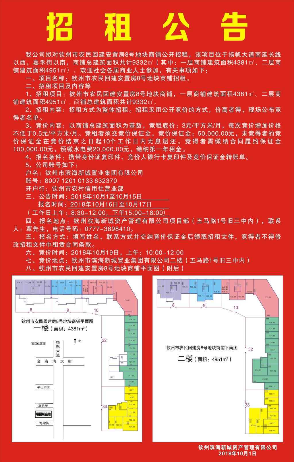 欽州濱海新城資產管理有限公司受欽州市濱海新城置業(yè)集團有限公司委托,對北部灣大學學生美食街進行公開招租,歡迎符合條件的競租人參加競租,現(xiàn)將有關事項公告如下: