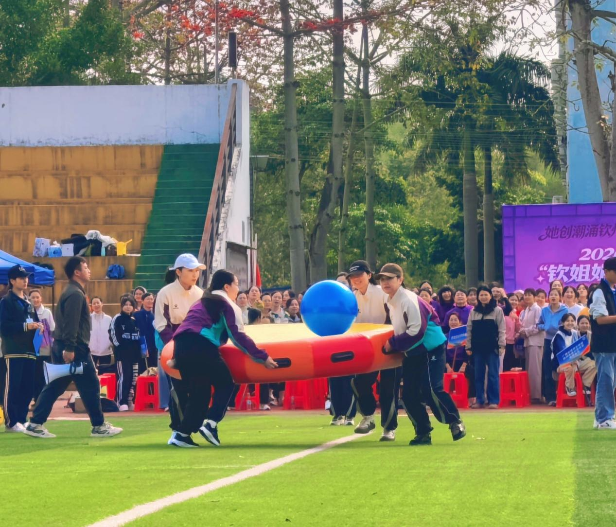 在第116個“三八”國際婦女節(jié)來臨之際,欽州市2026年“‘她’力量共建濱海運河城”趣味運動會于3月5日上午在北部灣職業(yè)技術(shù)學校足球場火熱開賽。本次趣味運動會設(shè)置《揚帆躍馬啟新航》《策馬揚鞭建新功》《凝心聚力齊奮進》《運河巾幗勇當先》四個特色項目,兼具趣味性與競技性,對團隊的協(xié)作能力、應變能力和拼搏精神提出了多重考驗。