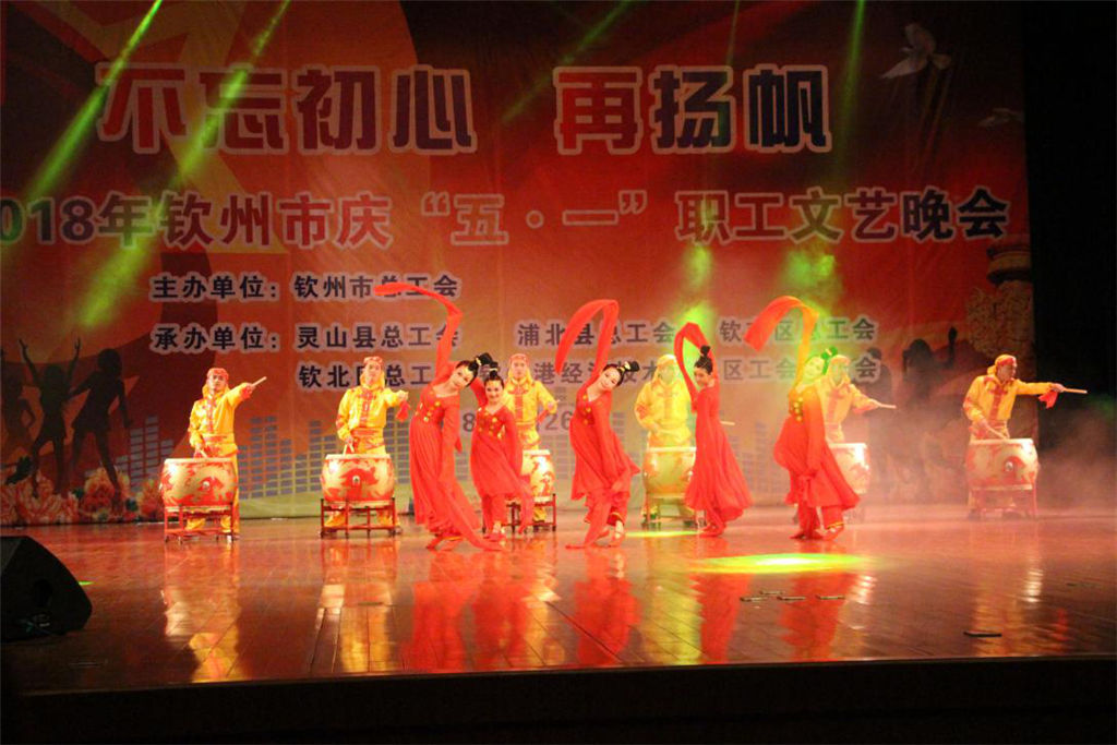 4月26日,市總工會(huì)在市文化藝術(shù)中心舉行“不忘初心,再揚(yáng)帆”2018年欽州市慶“五一”職工文藝晚會(huì),我集團(tuán)公司選送節(jié)目《鼓動(dòng)開篇》,雄壯的鼓聲和優(yōu)美的舞姿,贏得現(xiàn)場(chǎng)觀眾陣陣掌聲。