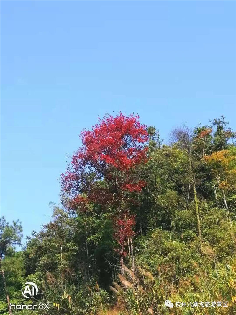 很多人都說,八寨溝好像是沒有冬天的。在北方雪花紛飛之時(shí),八寨溝仍然綠意盎然,仍然溫暖如春。但似乎是預(yù)知了冷空氣的到來,八寨溝的楓樹也悄然披上紅裝,梅園盡頭,萬壽谷公路兩側(cè),俯首間,一樹紅葉,滿徑絳色;仰望中,層林盡染,天然畫卷。梅園盡頭,五孔橋旁,流水潺潺,一潭清水,楓葉輕浮,好一幅天然的臨水丹楓圖。