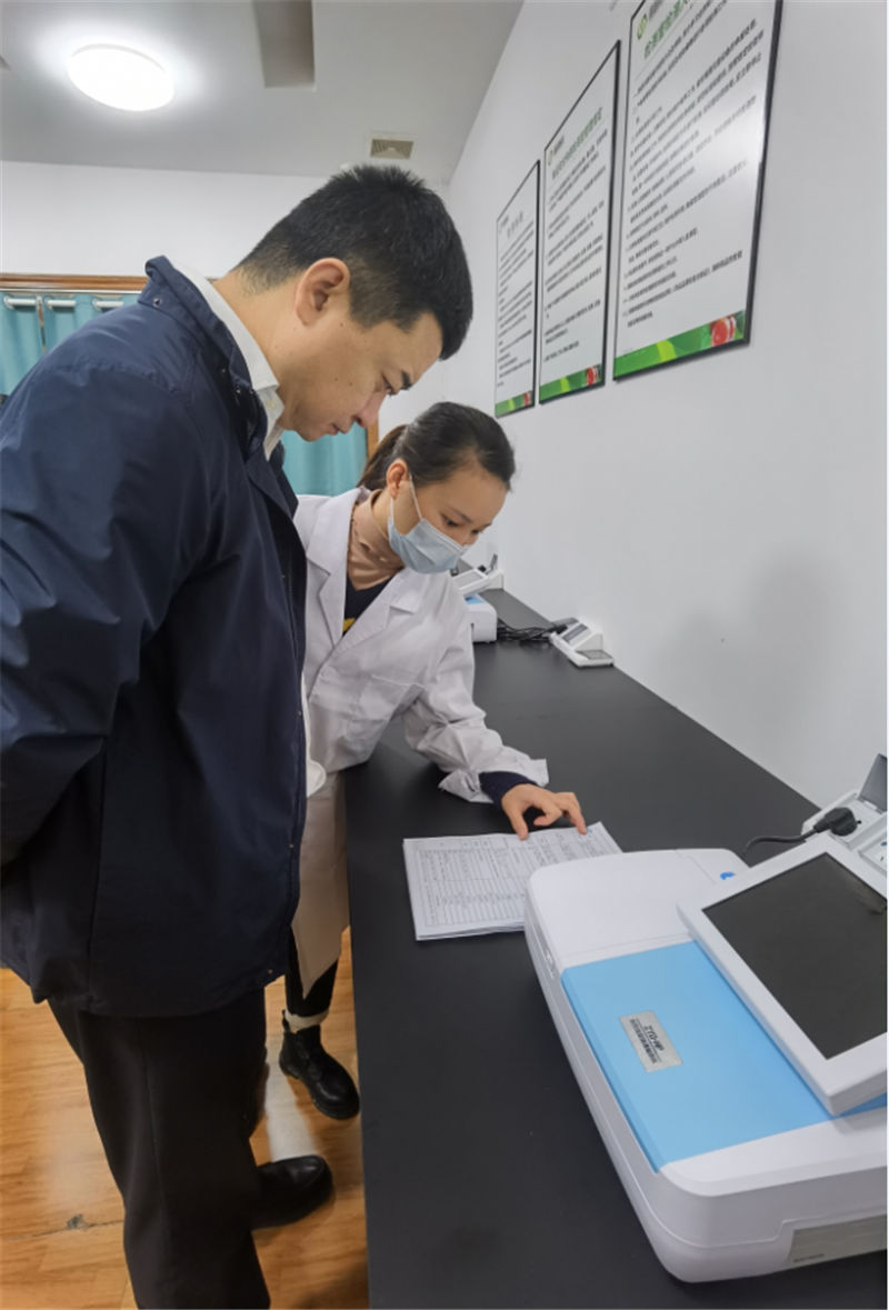 姚永福對基地檢測中心工作人員進行詳細詢問并查看相關檢測資料