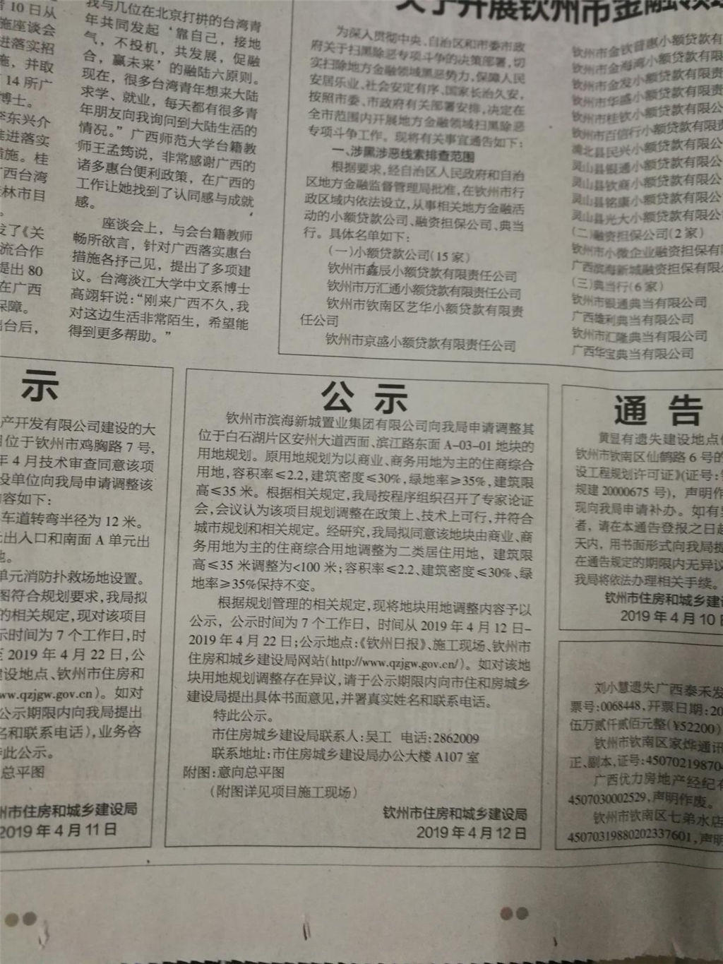 為盤(pán)活存量土地,加快推進(jìn)經(jīng)營(yíng)性項(xiàng)目開(kāi)展,我集團(tuán)公司擬與廣西欽州華元置業(yè)有限公司合作開(kāi)發(fā)北部灣人才創(chuàng)業(yè)基地項(xiàng)目二期地塊,雙方于2018年12月17日正式簽訂了承包開(kāi)發(fā)協(xié)議。目前投資發(fā)展部正在積極對(duì)接開(kāi)展項(xiàng)目開(kāi)發(fā)前置工作,其中地塊規(guī)劃調(diào)整論證已于2019年2月22日通過(guò)了市住建局組織召開(kāi)的專家評(píng)審會(huì),并于2019年4月22日完成了項(xiàng)目現(xiàn)場(chǎng)、網(wǎng)站及報(bào)刊的公示工作,在規(guī)劃調(diào)整的關(guān)鍵環(huán)節(jié)取得了突破性進(jìn)展。