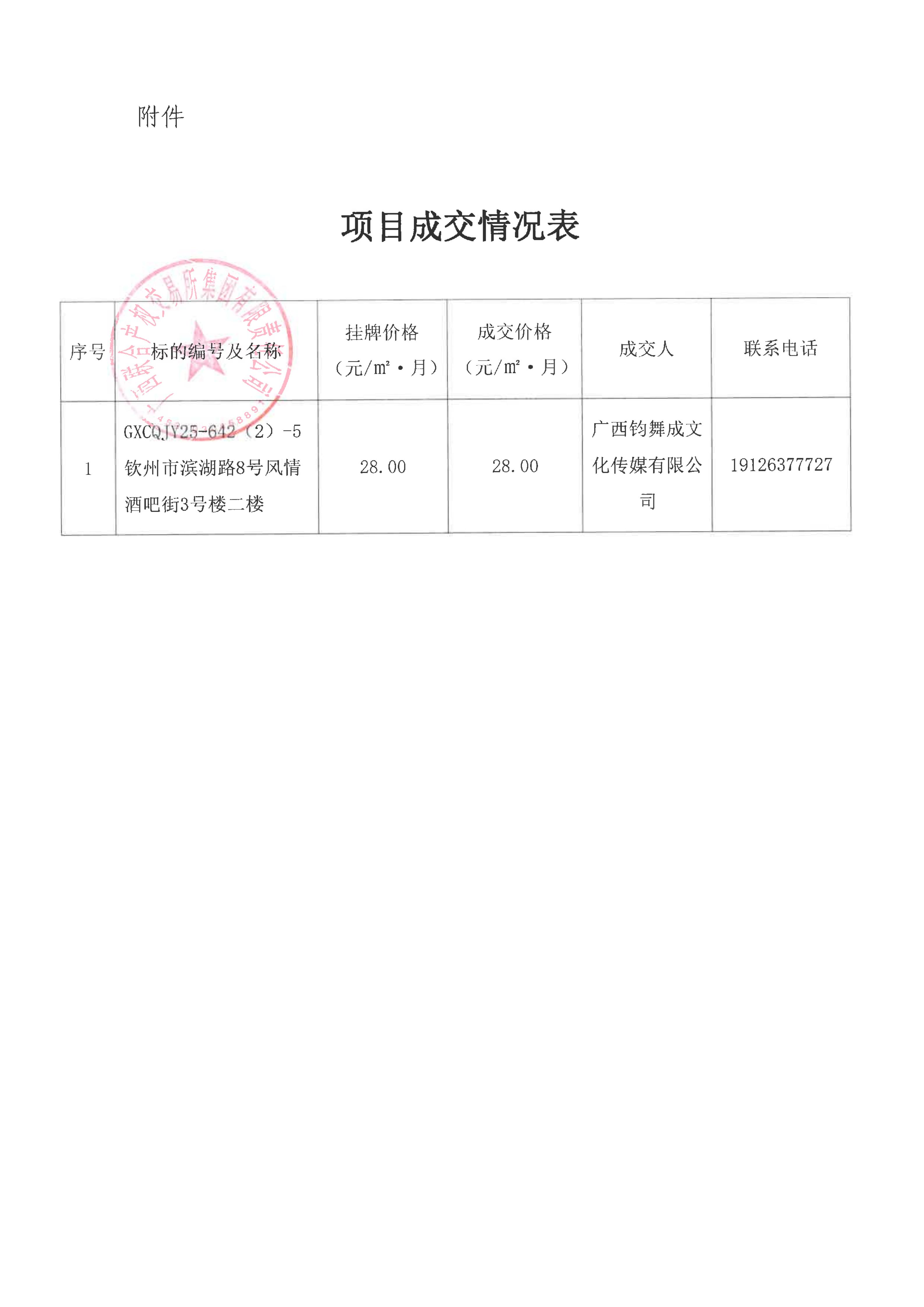 關于欽州市濱湖路8號風情酒吧街(蘭亭街)房屋公開招租項目成交情況的函(第四期)