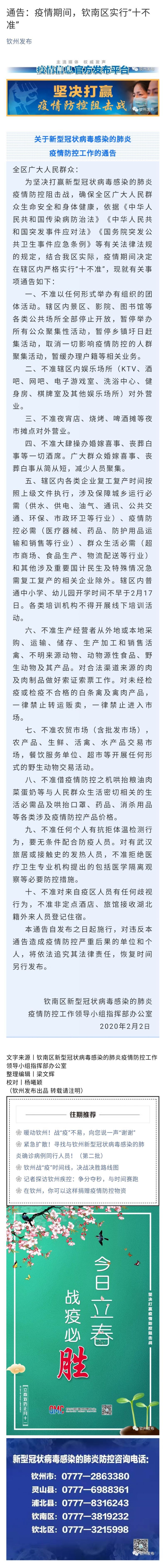 通告:疫情期間,欽南區(qū)實(shí)行“十不準(zhǔn)”